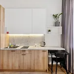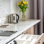Повністю обладнана кухня зі скляним посудом є частиною зручностей для самостійного приготування їжі в апартаментах.